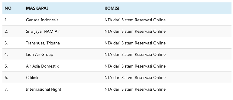| 1. | Garuda Indonesia | NTA dari Sistem Reservasi Online |