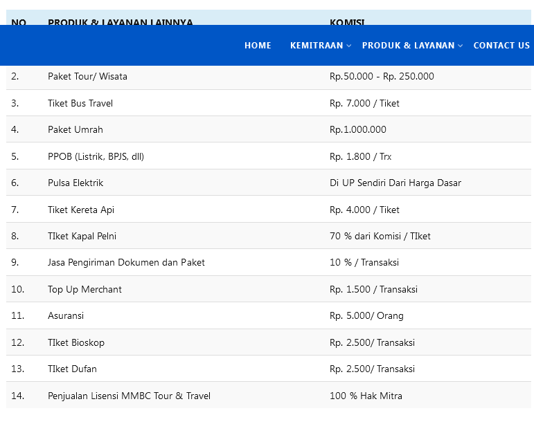 | 14. | Penjualan Lisensi MMBC Tour & Travel | 100 % Hak Mitra |