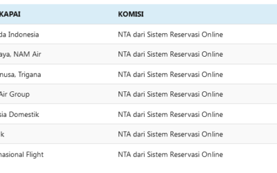 | 8. | TIket Kapal Pelni | 70 % dari Komisi / TIket |